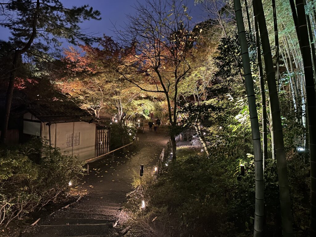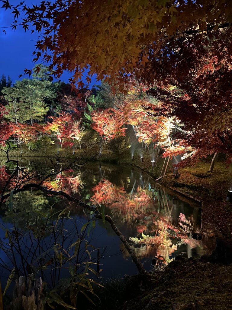 その後紅葉のライトアップでは幻想的な風景を楽しみました。